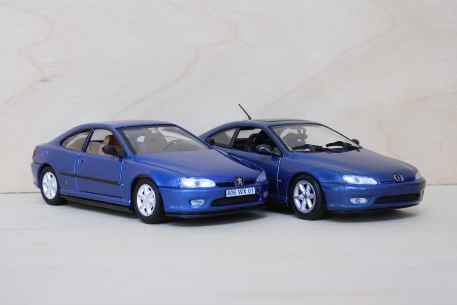 Deze twee coupés zijn nog makkelijk te vinden. De miniatuur van Solido is niet zeldzaam en de coupé 406 staat steeds in het catalogus van Minichamps.